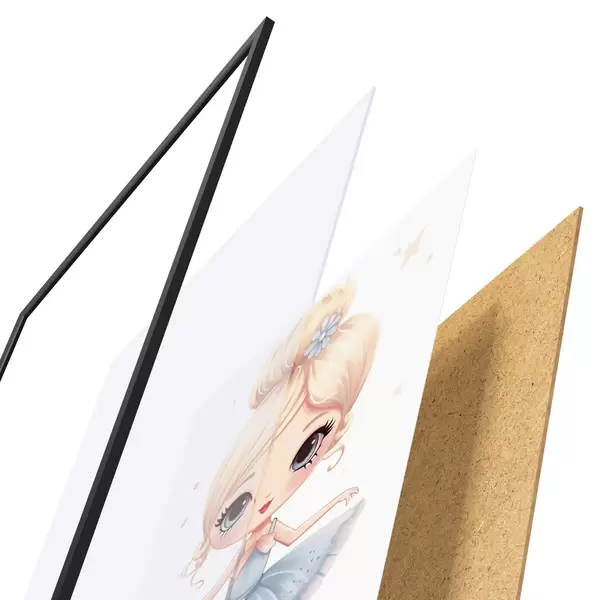 Das Poster besteht aus einem Rahmen, Plexiglas, einem gedruckten Bild und einer Rückwand aus Spanplatten. Dank der Halterungen auf der Rückseite kann das Poster sofort an die Wand gehängt werden.