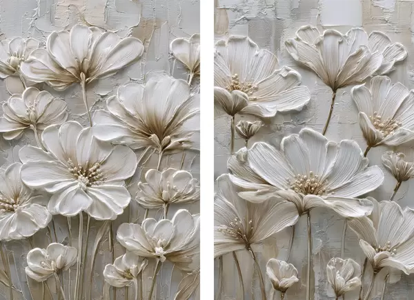 Poster cremefarbene Blumen im Imitations-Impasto-Stil Nr d00701
