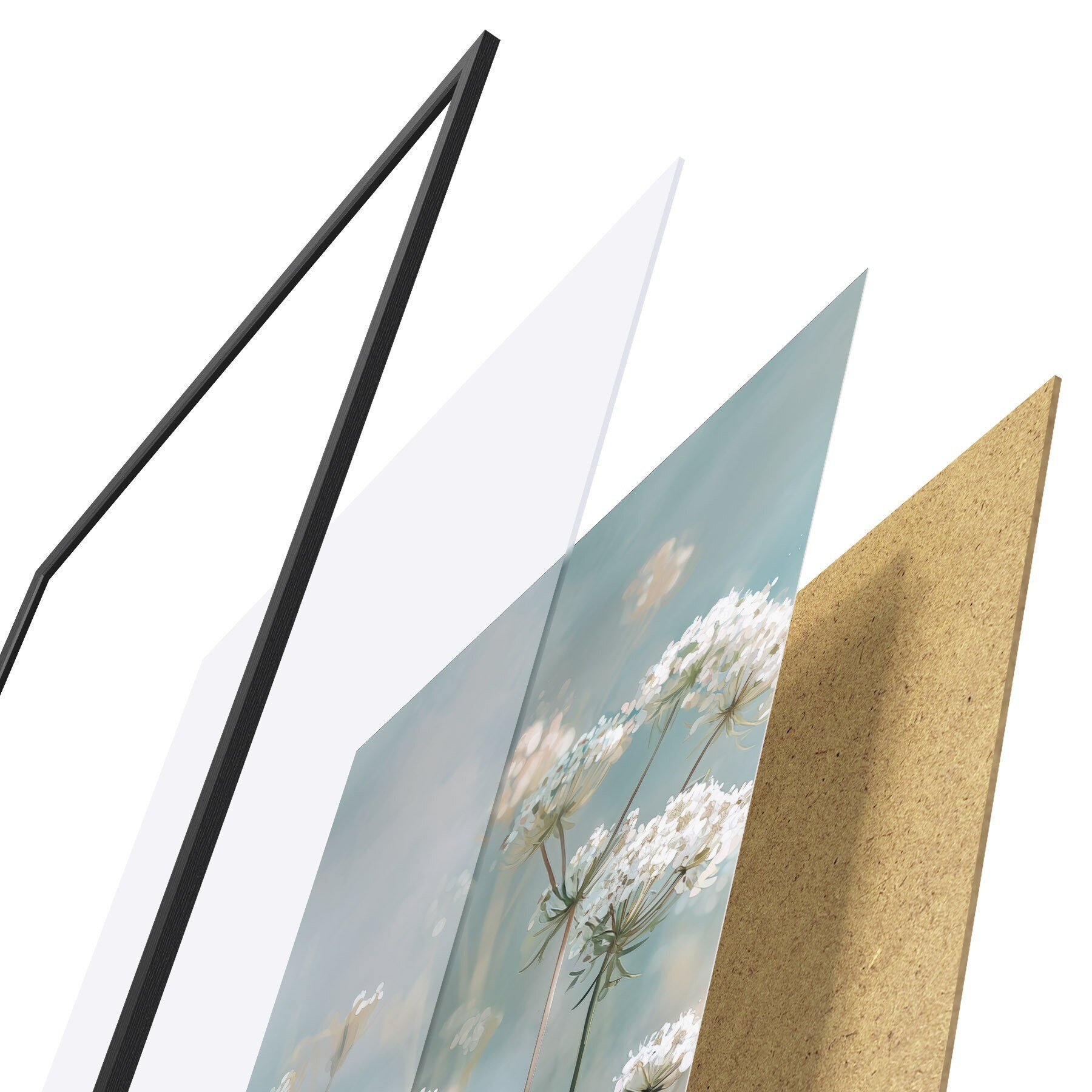 Das Poster besteht aus einem Rahmen, Plexiglas, einem gedruckten Bild und einer Rückwand aus Spanplatten. Dank der Halterungen auf der Rückseite kann das Poster sofort an die Wand gehängt werden.