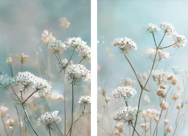 Poster Königin-Annes-Spitze-Blumen im Aquarellstil auf blauem Hintergrund Nr d00705