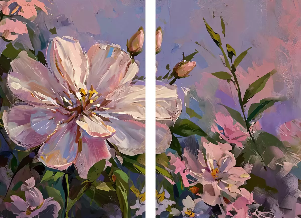 Poster rosa Blumen im Stil eines Ölgemäldes d00706
