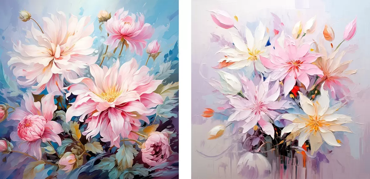 Drei Materialtypen stehen zur Verfügung: Economic Canvas - ein dichtes und haltbares Material für den Digitaldruck, identisch mit Malerleinwand, wasserfeste Oberfläche, realistische Wiedergabe von Details, mittelkörniges Material. Premium Canvas - die Textur ähnelt der einer Malerleinwand (verwobene kleine Fäden). Weiche, detaillierte Wiedergabe des Bildes auf einer matten Oberfläche. Eco-Premium - hochwertiges Gewebe aus 100% Baumwolle. Dank der natürlichen Baumwollfasern ist das Material langlebig und verschleißfest. Hervorragende Farbwiedergabe und Detailtreue.