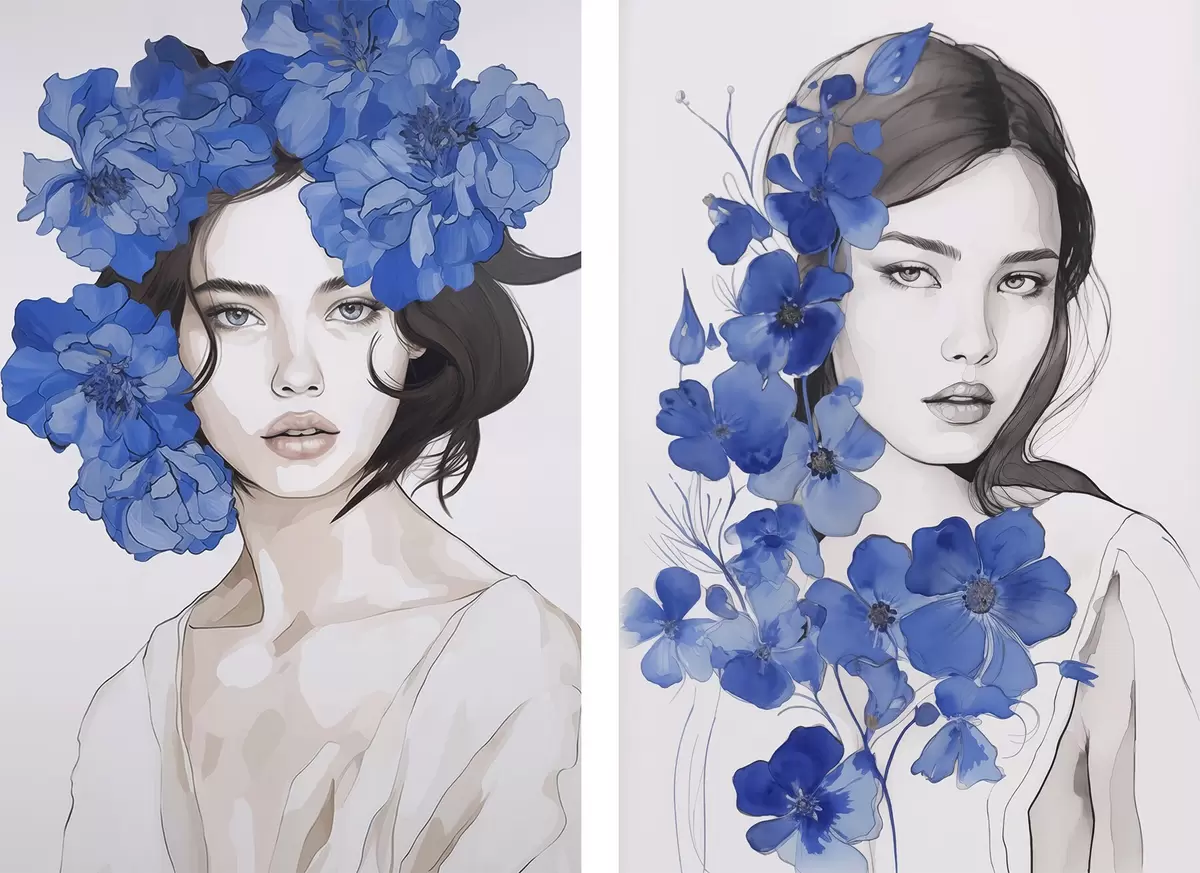 Poster Porträt eines Mädchens mit blauen Blumen Nr d00721