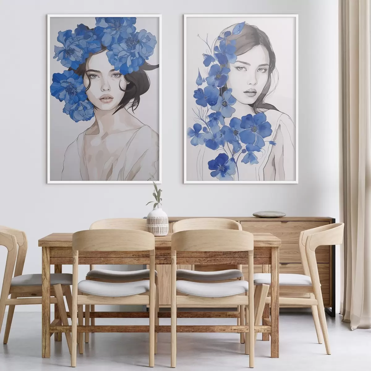 Poster Porträt eines Mädchens mit blauen Blumen d00721