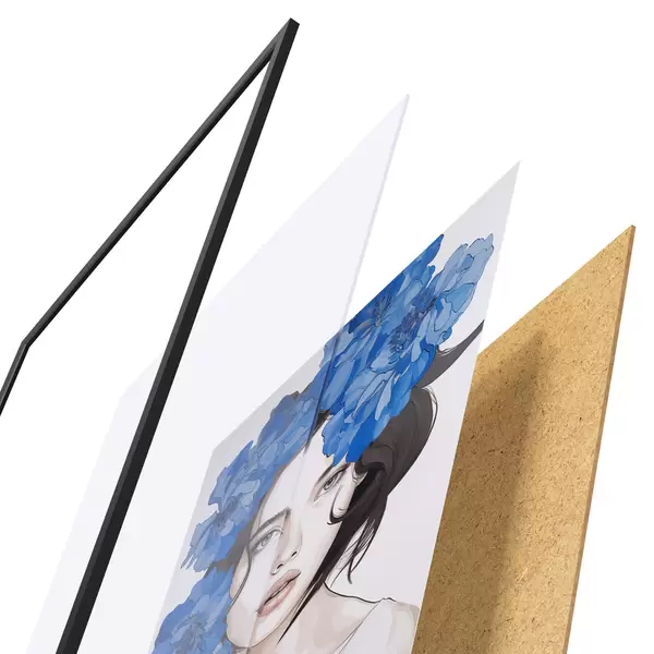 Das Poster besteht aus einem Rahmen, Plexiglas, einem gedruckten Bild und einer Rückwand aus Spanplatten. Dank der Halterungen auf der Rückseite kann das Poster sofort an die Wand gehängt werden.