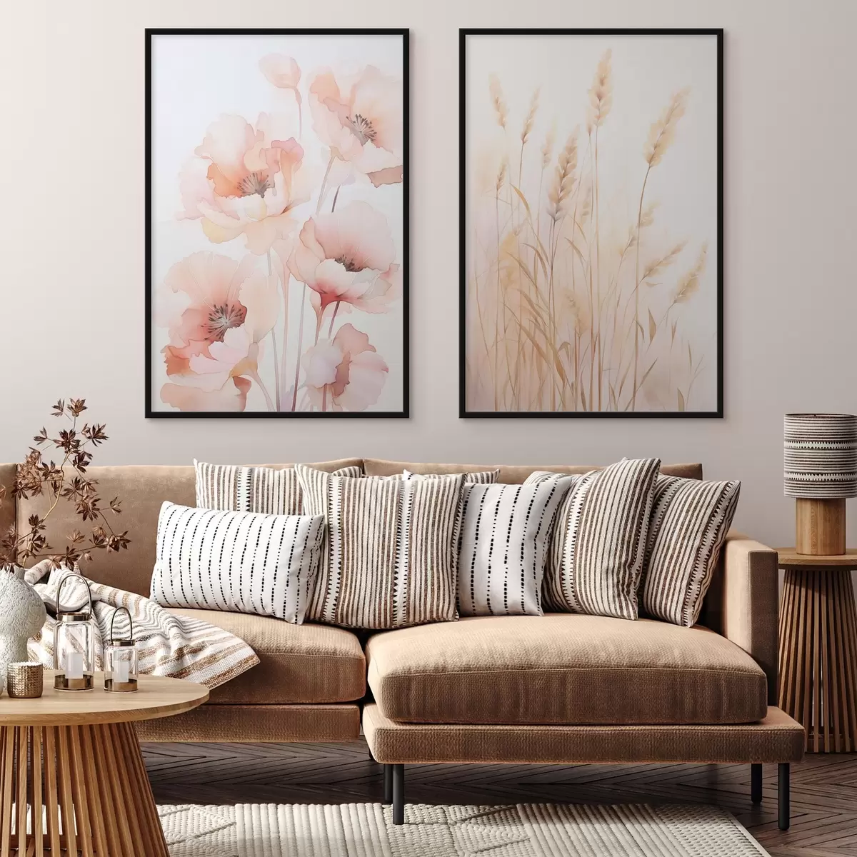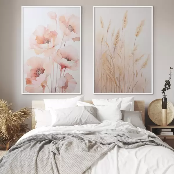 Poster Mohnblumen und Ährchen, Aquarellimitation d00723