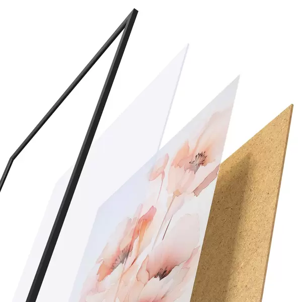 Das Poster besteht aus einem Rahmen, Plexiglas, einem gedruckten Bild und einer Rückwand aus Spanplatten. Dank der Halterungen auf der Rückseite kann das Poster sofort an die Wand gehängt werden.
