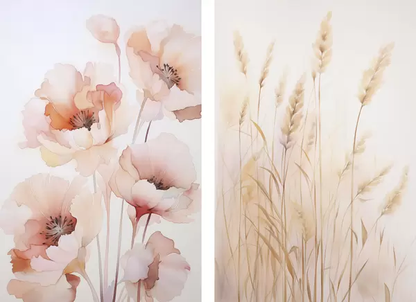 Poster Mohnblumen und Ährchen, Aquarellimitation d00723