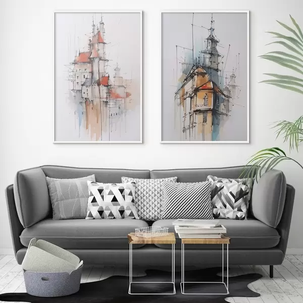 Poster Häuser-Imitation, Skizze und Aquarell Nr d00725