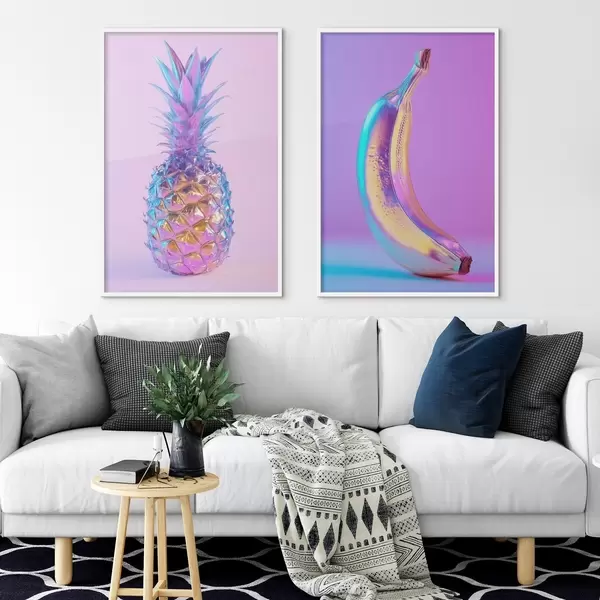 Poster leuchtend glänzende Ananas und Banane im Pop-Art-Stil Nr d00737