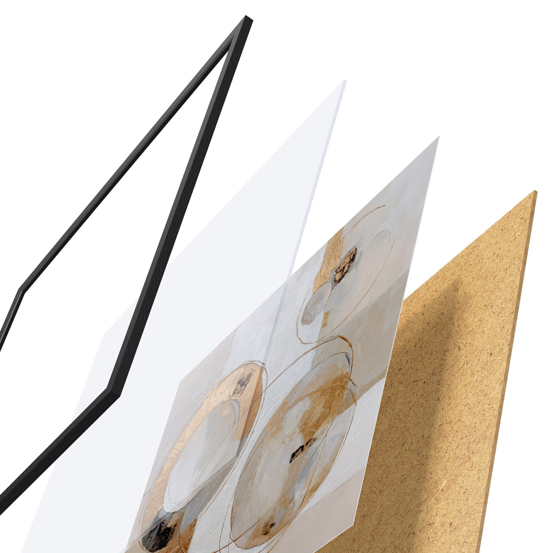 Das Poster besteht aus einem Rahmen, Plexiglas, einem gedruckten Bild und einer Rückwand aus Spanplatten. Dank der Halterungen auf der Rückseite kann das Poster sofort an die Wand gehängt werden.