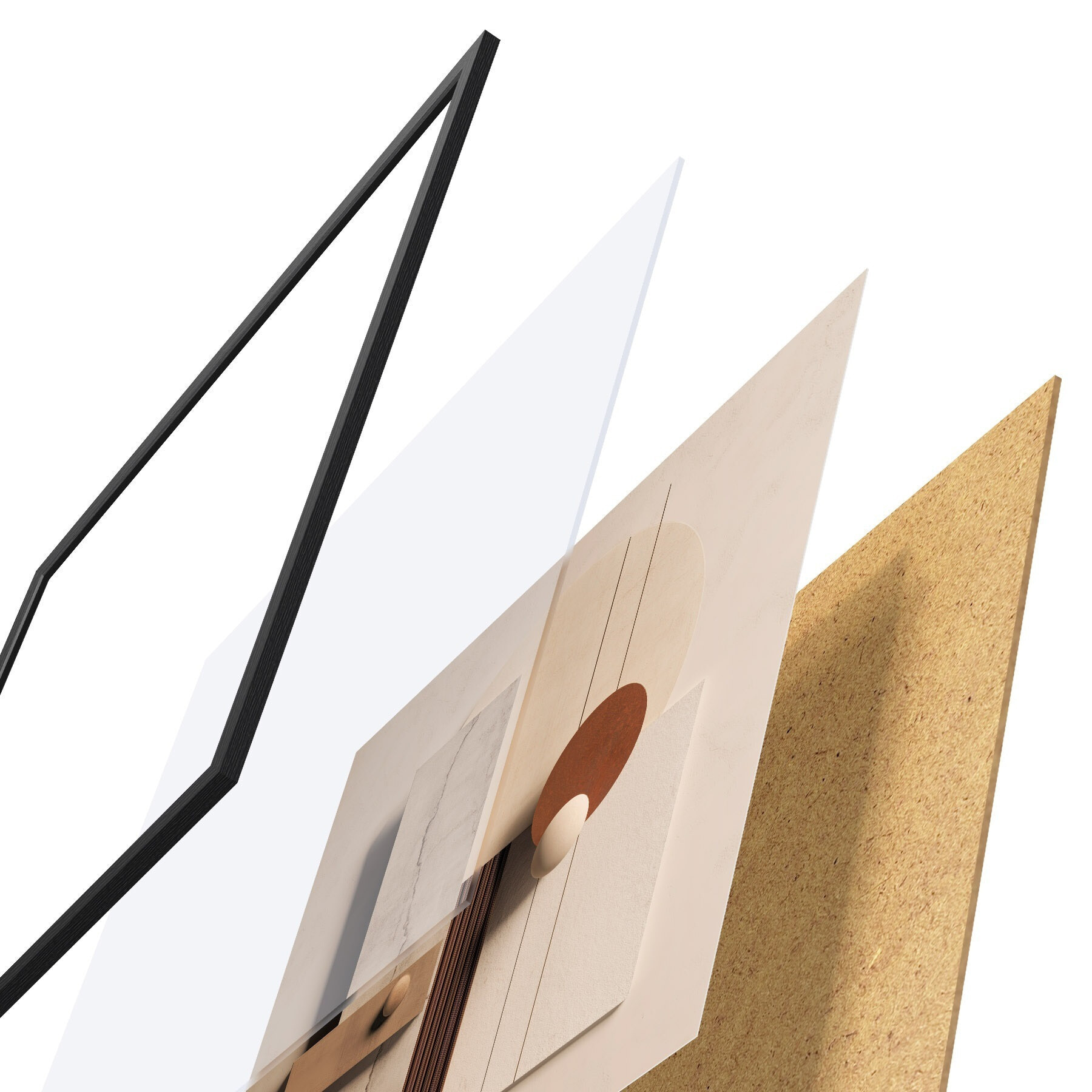 Das Poster besteht aus einem Rahmen, Plexiglas, einem gedruckten Bild und einer Rückwand aus Spanplatten. Dank der Halterungen auf der Rückseite kann das Poster sofort an die Wand gehängt werden.