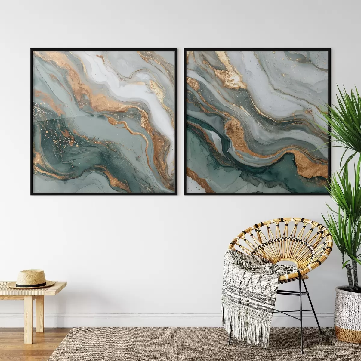 Poster Marmorstruktur in Grau-Türkis-Tönen Nr d00744