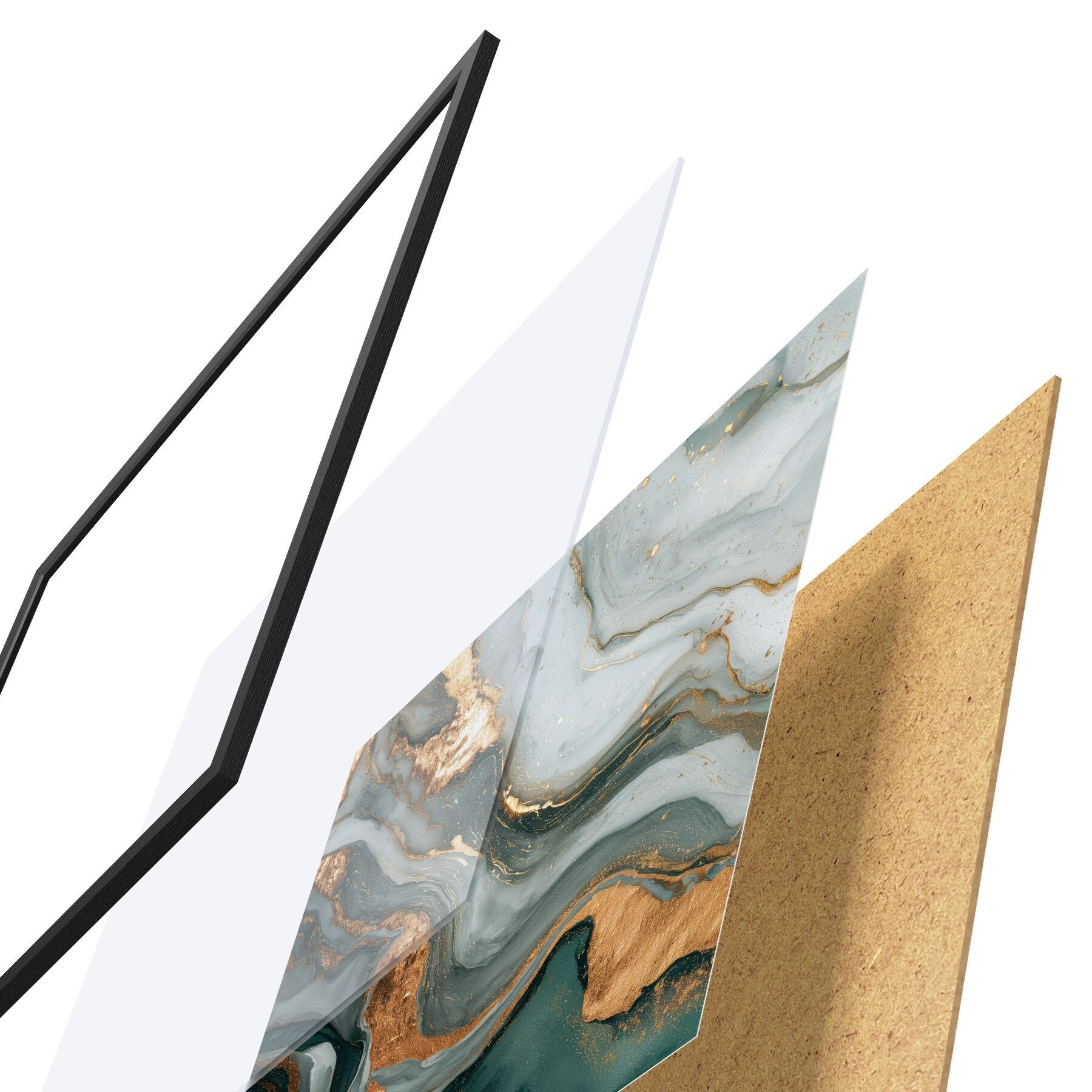 Das Poster besteht aus einem Rahmen, Plexiglas, einem gedruckten Bild und einer Rückwand aus Spanplatten. Dank der Halterungen auf der Rückseite kann das Poster sofort an die Wand gehängt werden.