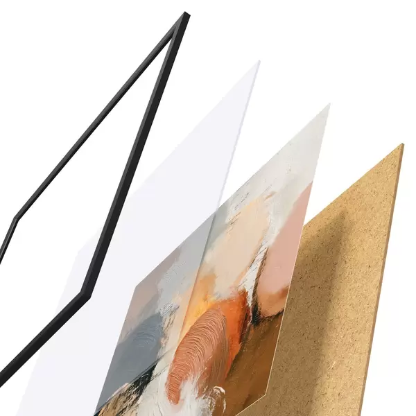 Das Poster besteht aus einem Rahmen, Plexiglas, einem gedruckten Bild und einer Rückwand aus Spanplatten. Dank der Halterungen auf der Rückseite kann das Poster sofort an die Wand gehängt werden.