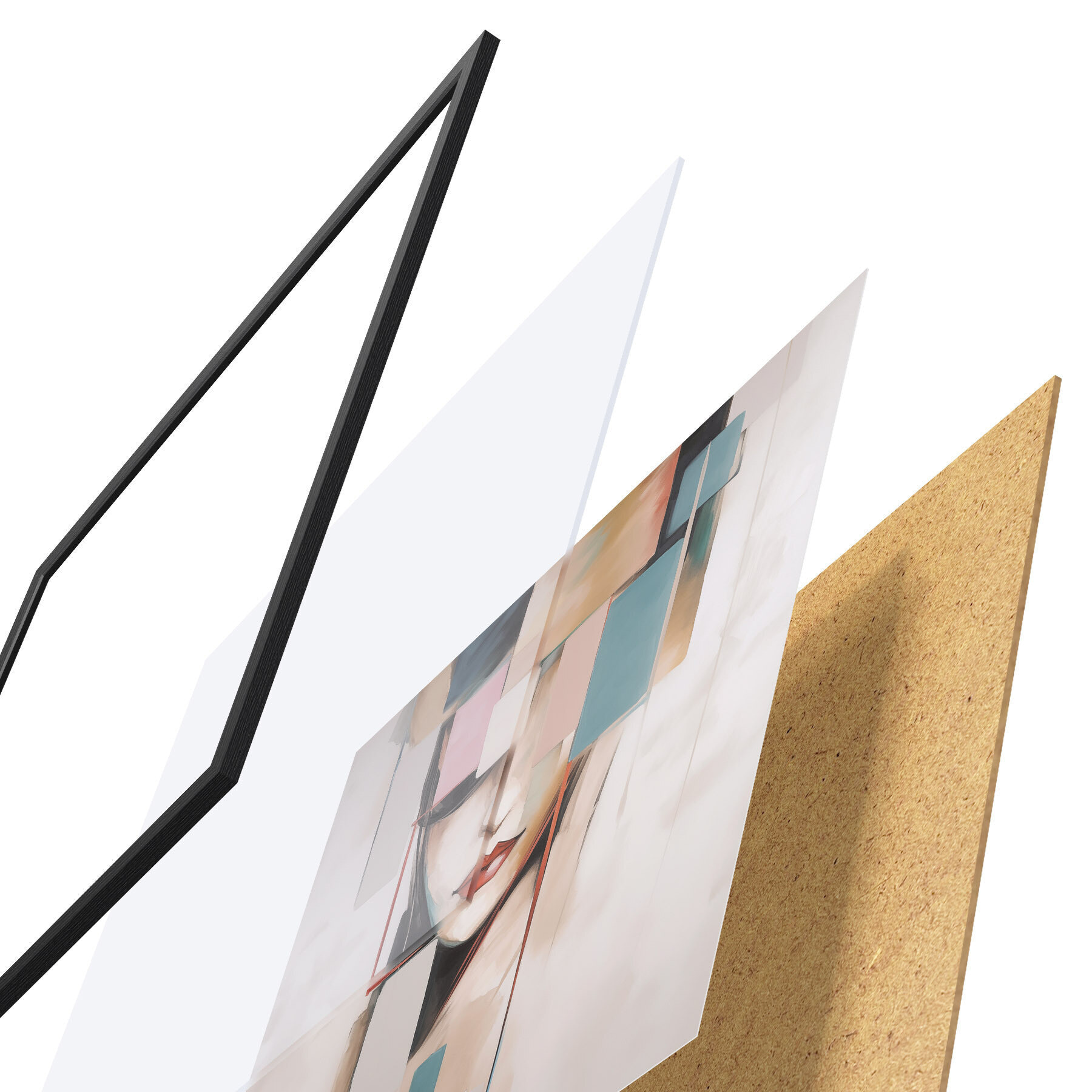Das Poster besteht aus einem Rahmen, Plexiglas, einem gedruckten Bild und einer Rückwand aus Spanplatten. Dank der Halterungen auf der Rückseite kann das Poster sofort an die Wand gehängt werden.