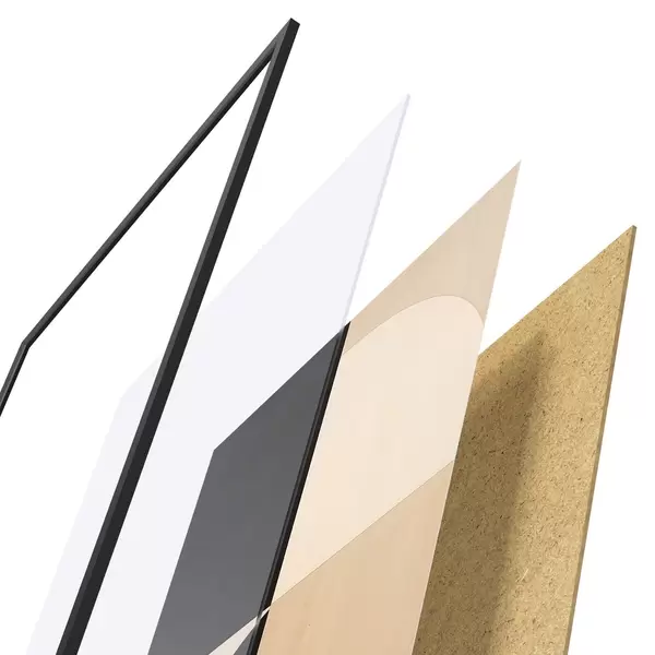Das Poster besteht aus einem Rahmen, Plexiglas, einem gedruckten Bild und einer Rückwand aus Spanplatten. Dank der Halterungen auf der Rückseite kann das Poster sofort an die Wand gehängt werden.