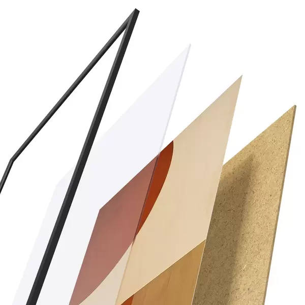 Das Poster besteht aus einem Rahmen, Plexiglas, einem gedruckten Bild und einer Rückwand aus Spanplatten. Dank der Halterungen auf der Rückseite kann das Poster sofort an die Wand gehängt werden.