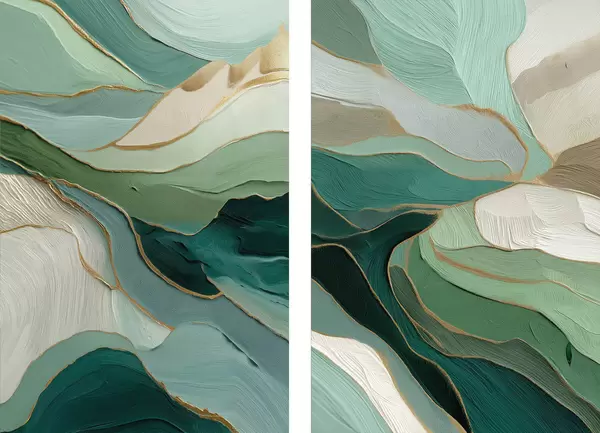 Poster Smaragdgrüne Schichtabstraktion mit gelbem Umriss Nr d00766
