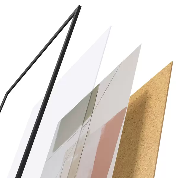 Das Poster besteht aus einem Rahmen, Plexiglas, einem gedruckten Bild und einer Rückwand aus Spanplatten. Dank der Halterungen auf der Rückseite kann das Poster sofort an die Wand gehängt werden.