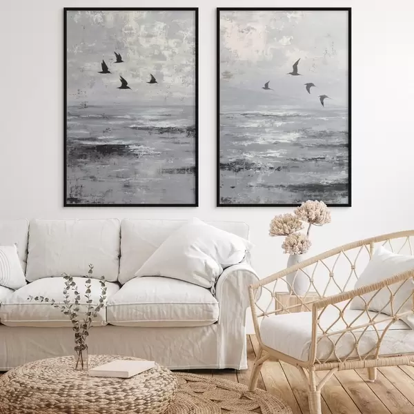 Poster Abstrakte Landschaft mit Vögeln Nr d00778