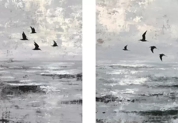 Poster Abstrakte Landschaft mit Vögeln Nr d00778