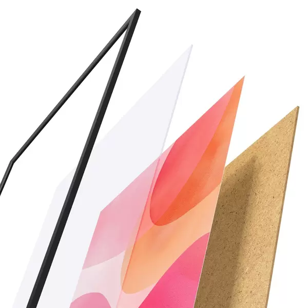Das Poster besteht aus einem Rahmen, Plexiglas, einem gedruckten Bild und einer Rückwand aus Spanplatten. Dank der Halterungen auf der Rückseite kann das Poster sofort an die Wand gehängt werden.