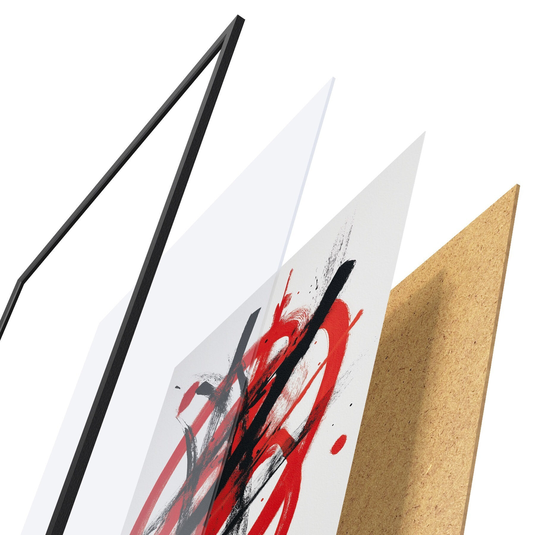 Das Poster besteht aus einem Rahmen, Plexiglas, einem gedruckten Bild und einer Rückwand aus Spanplatten. Dank der Halterungen auf der Rückseite kann das Poster sofort an die Wand gehängt werden.