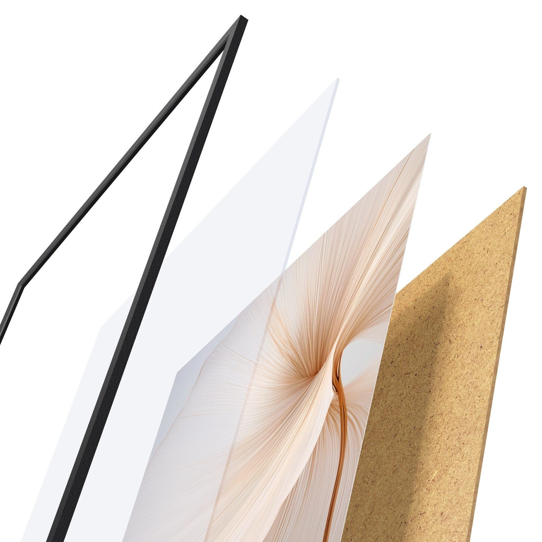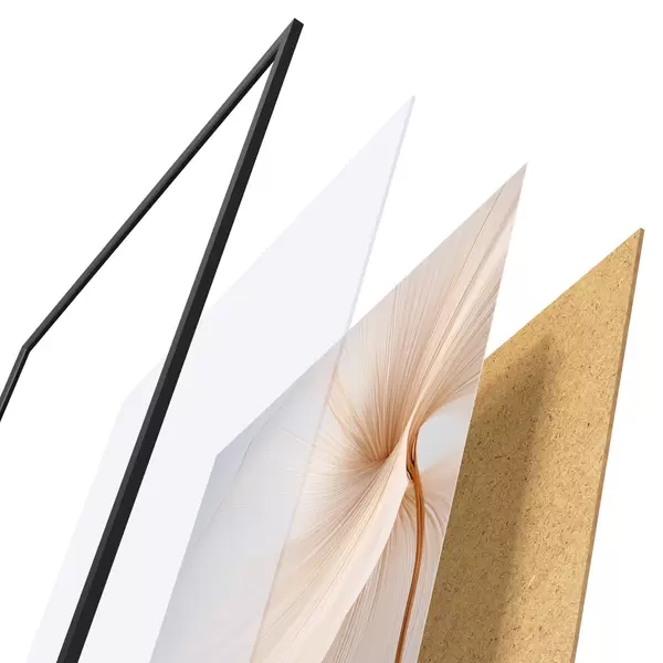 Das Poster besteht aus einem Rahmen, Plexiglas, einem gedruckten Bild und einer Rückwand aus Spanplatten. Dank der Halterungen auf der Rückseite kann das Poster sofort an die Wand gehängt werden.