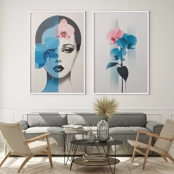 Poster Abstraktes Kunstporträt einer Frau mit Orchideen d00818