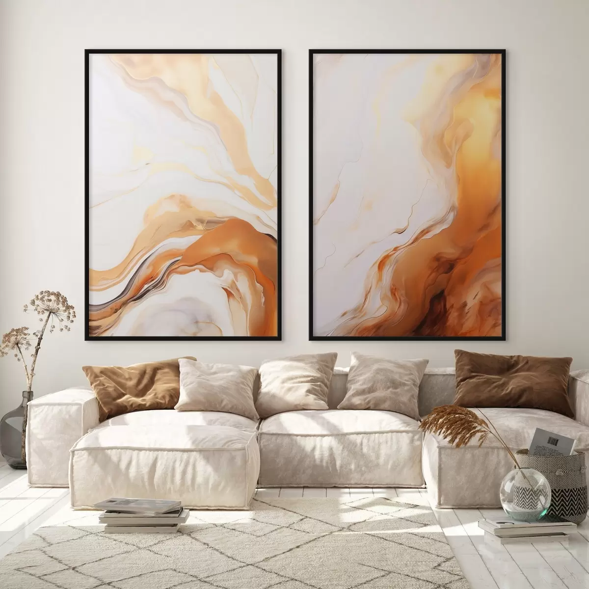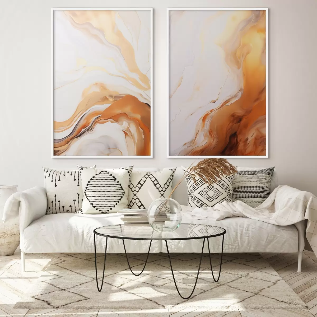 Poster Abstrakte Malerei-Imitation in Weiß und Orange, Fluid Art mit wellenförmigen Linien, moderne Kunst d00825