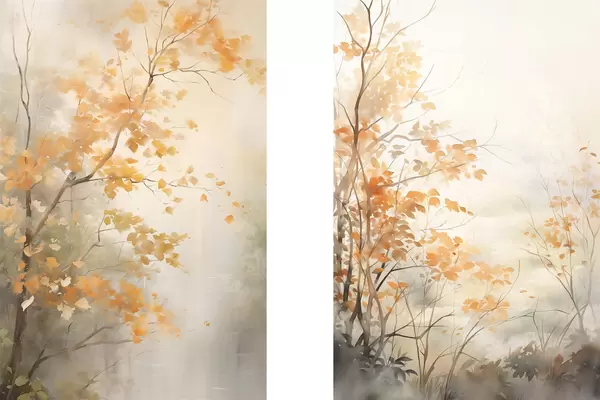 Poster Herbstbäume mit orangefarbenen Blättern und Zweigen, sanfter Aquarellstil, zarte Pinselstriche Nr d00826