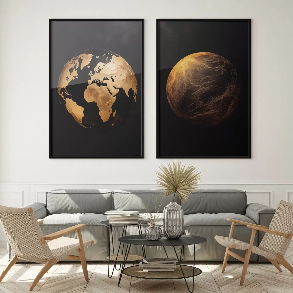 Poster Strukturierter abstrakter Erdglobus und Planet auf schwarzem Hintergrund, moderne minimalistische Kunst d00827