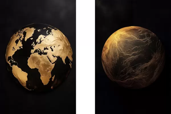 Poster Strukturierter abstrakter Erdglobus und Planet auf schwarzem Hintergrund, moderne minimalistische Kunst d00827