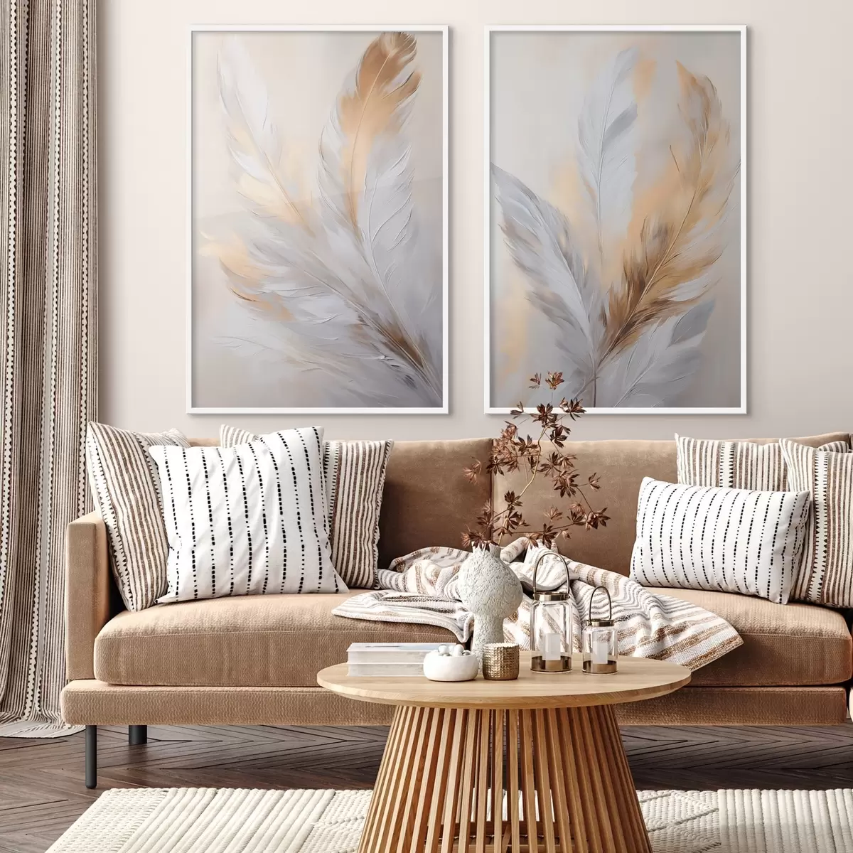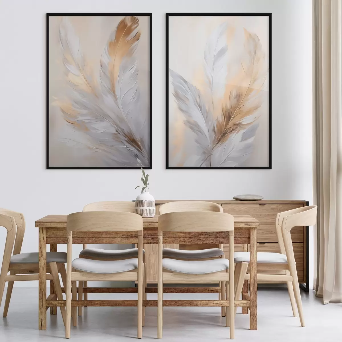 Poster Federn mit orangefarbenen Akzenten, strukturierte minimalistische Komposition, moderne Kunst Nr d00828