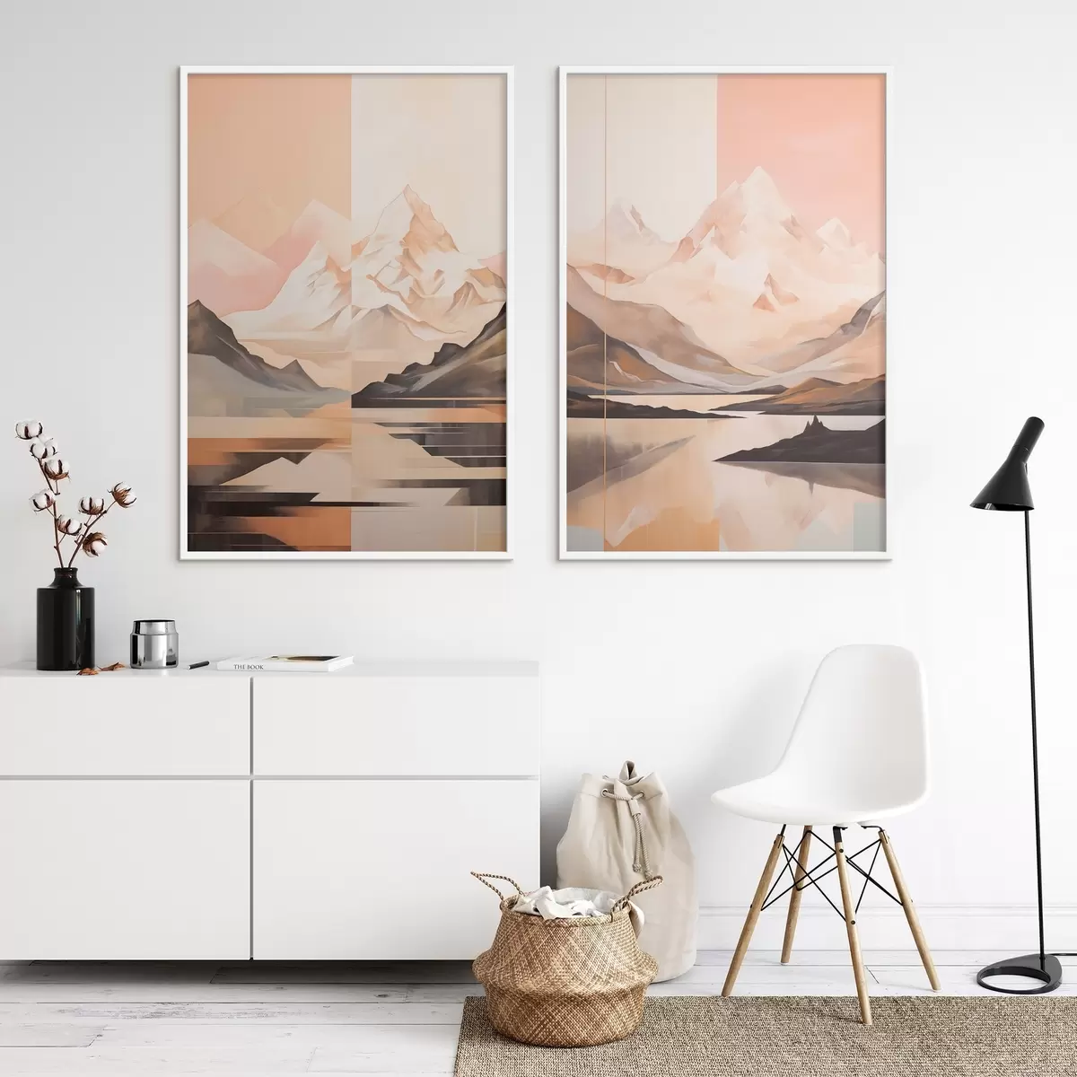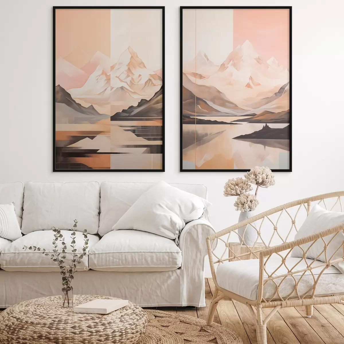 Poster Abstrakte Landschaft mit Bergen und einem See, Pastellfarben, minimalistischer Stil Nr d00830