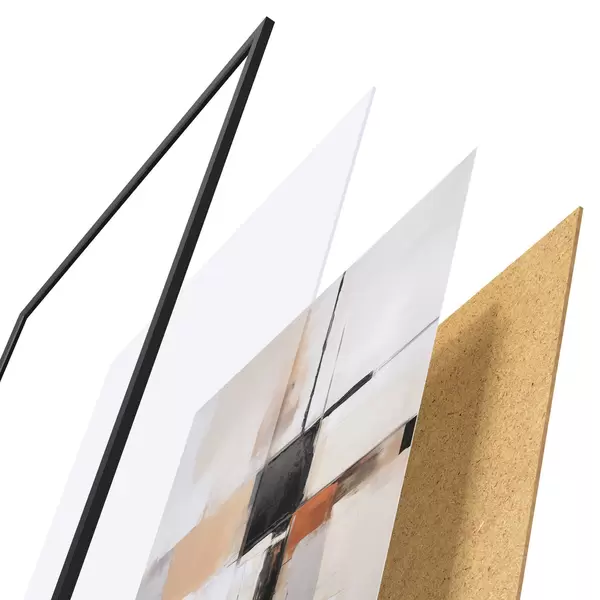 Das Poster besteht aus einem Rahmen, Plexiglas, einem gedruckten Bild und einer Rückwand aus Spanplatten. Dank der Halterungen auf der Rückseite kann das Poster sofort an die Wand gehängt werden.