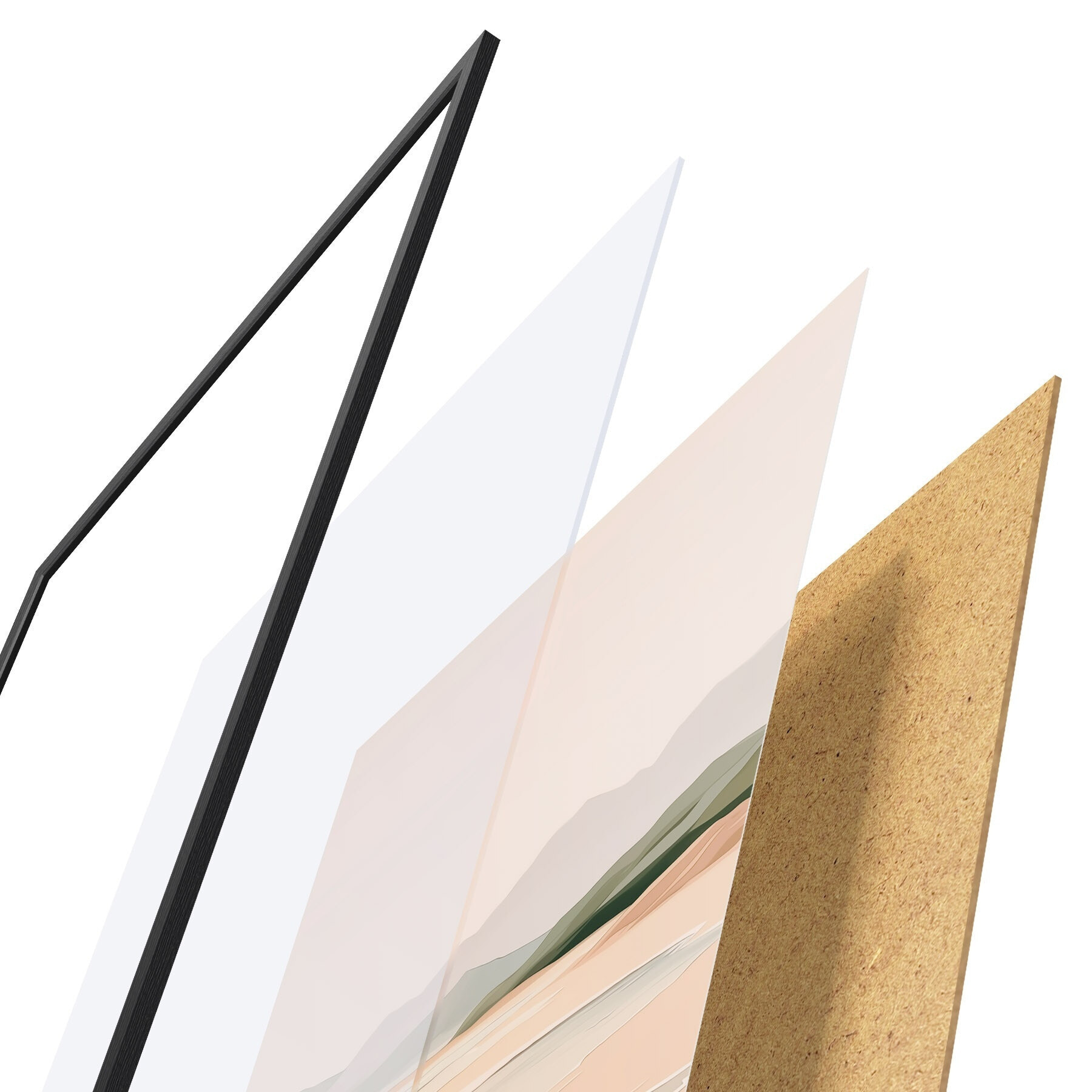 Das Poster besteht aus einem Rahmen, Plexiglas, einem gedruckten Bild und einer Rückwand aus Spanplatten. Dank der Halterungen auf der Rückseite kann das Poster sofort an die Wand gehängt werden.