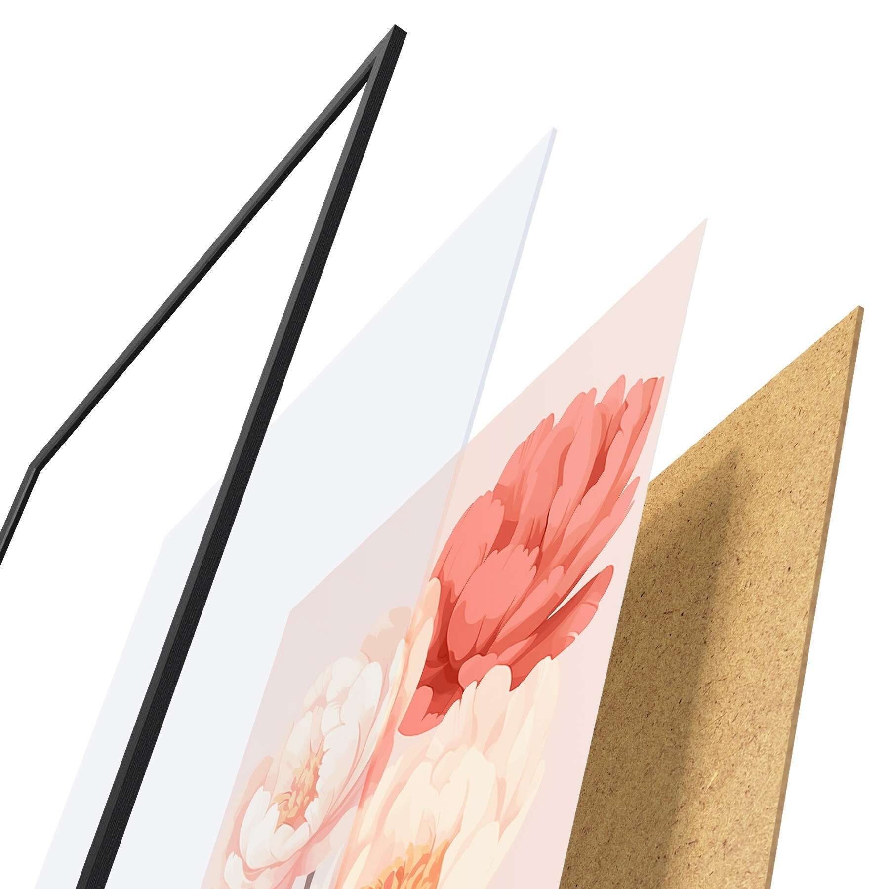 Das Poster besteht aus einem Rahmen, Plexiglas, einem gedruckten Bild und einer Rückwand aus Spanplatten. Dank der Halterungen auf der Rückseite kann das Poster sofort an die Wand gehängt werden.