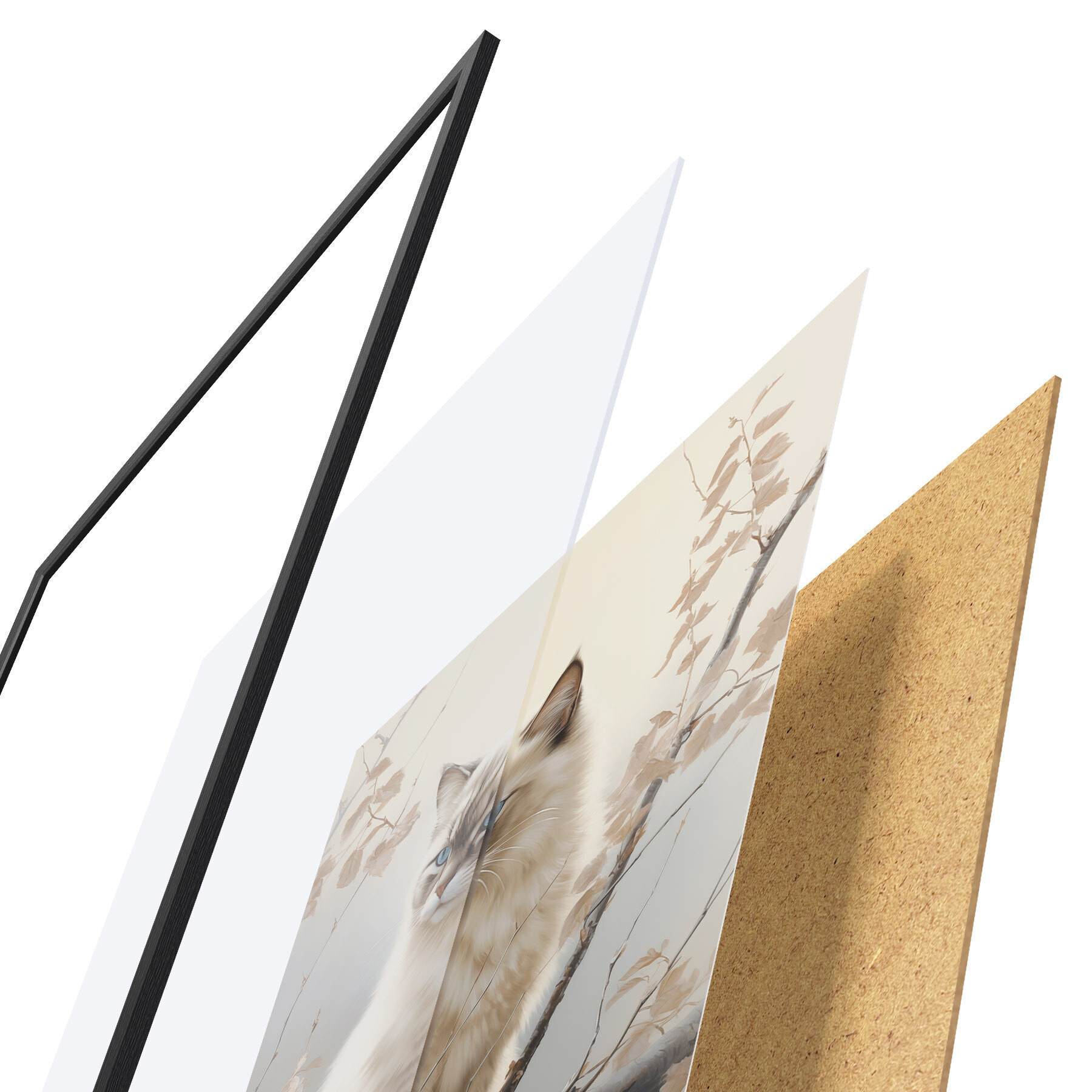 Das Poster besteht aus einem Rahmen, Plexiglas, einem gedruckten Bild und einer Rückwand aus Spanplatten. Dank der Halterungen auf der Rückseite kann das Poster sofort an die Wand gehängt werden.