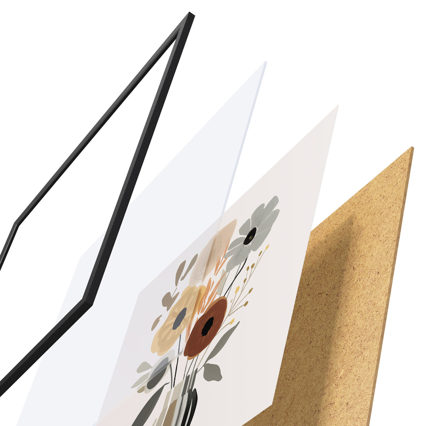 Das Poster besteht aus einem Rahmen, Plexiglas, einem gedruckten Bild und einer Rückwand aus Spanplatten. Dank der Halterungen auf der Rückseite kann das Poster sofort an die Wand gehängt werden.