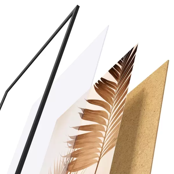 Das Poster besteht aus einem Rahmen, Plexiglas, einem gedruckten Bild und einer Rückwand aus Spanplatten. Dank der Halterungen auf der Rückseite kann das Poster sofort an die Wand gehängt werden.