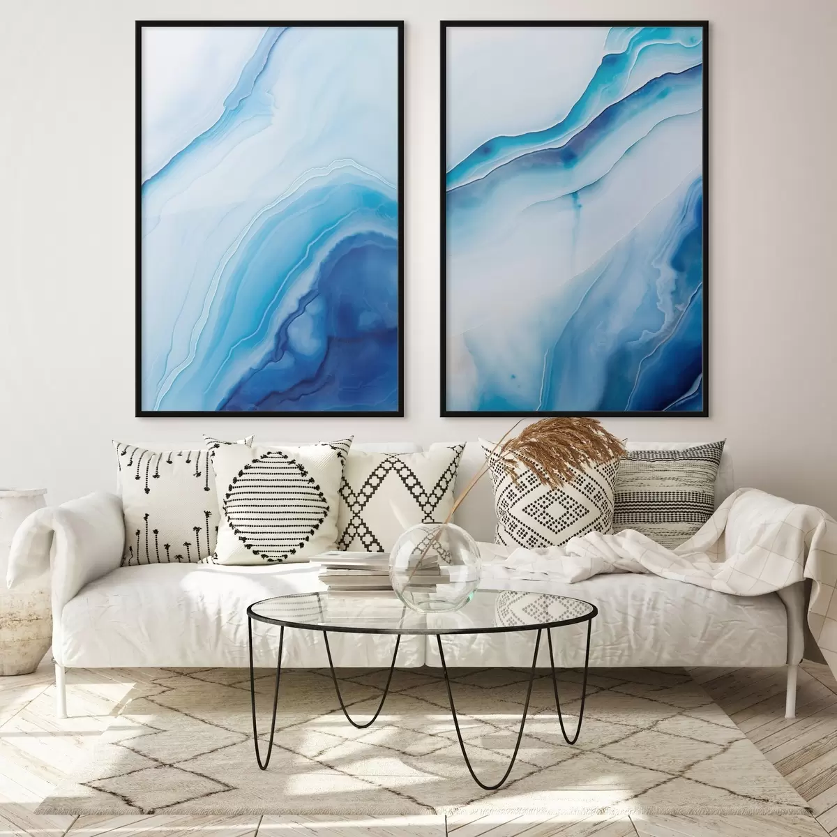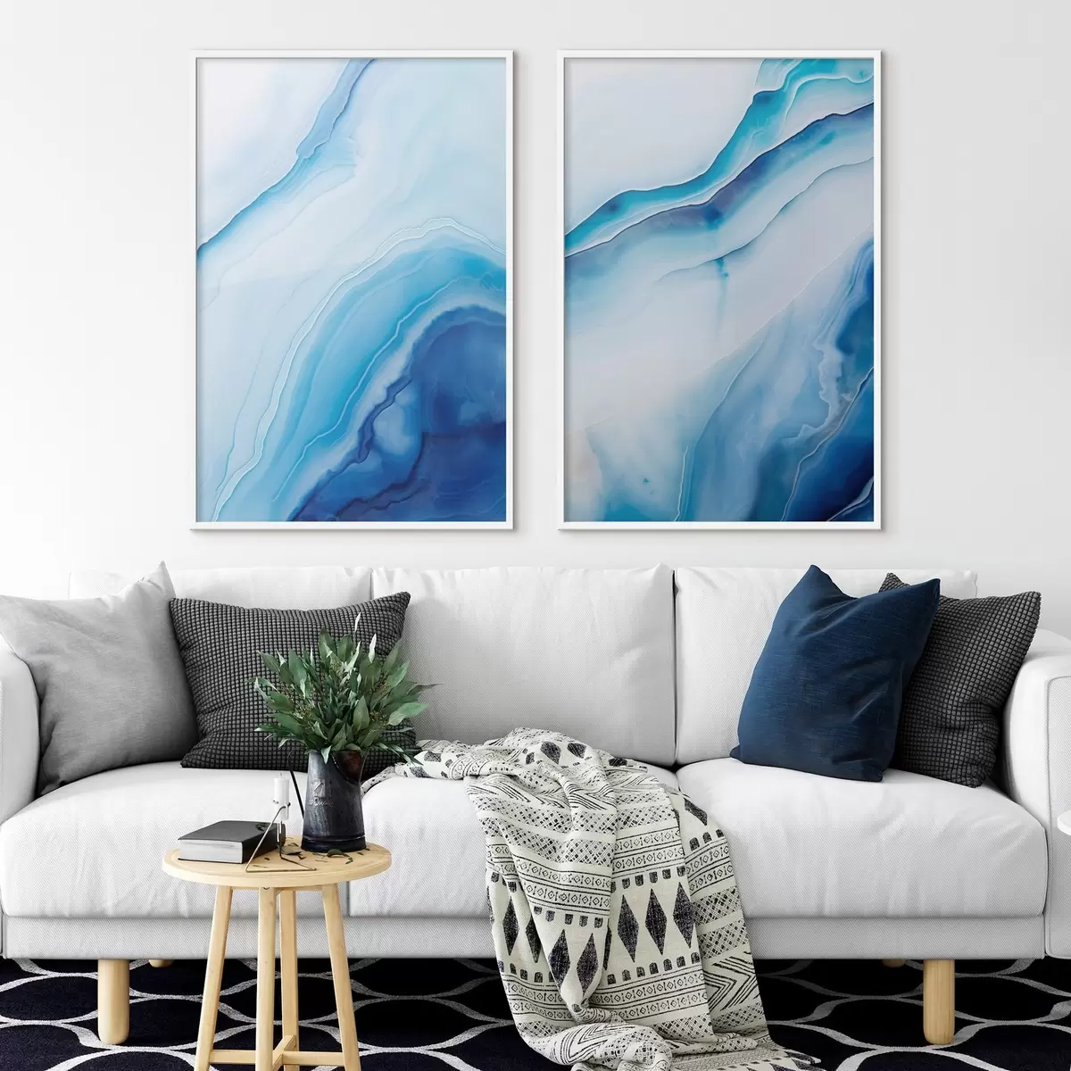 Poster Abstrakter blau-weißer Achatdruck, wirbelnde Linien und Farbverläufe, glatte Textur, moderne Kunst, minimalistisch d00888