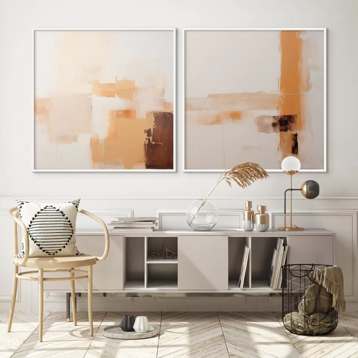 Poster Abstrakte zweiteilige Komposition in Beige und Braun d00891