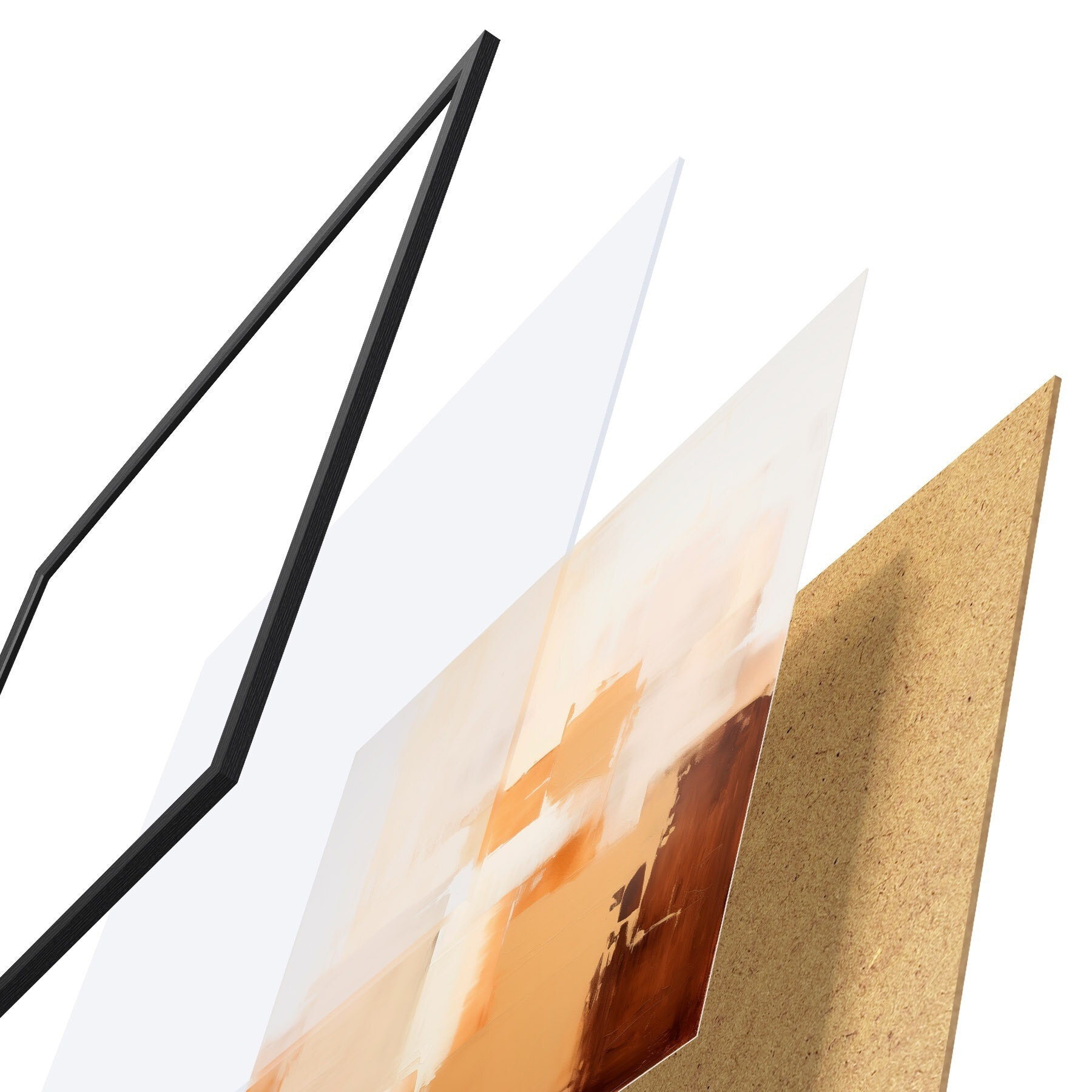 Das Poster besteht aus einem Rahmen, Plexiglas, einem gedruckten Bild und einer Rückwand aus Spanplatten. Dank der Halterungen auf der Rückseite kann das Poster sofort an die Wand gehängt werden.