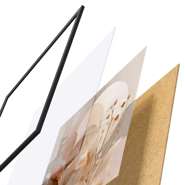 Das Poster besteht aus einem Rahmen, Plexiglas, einem gedruckten Bild und einer Rückwand aus Spanplatten. Dank der Halterungen auf der Rückseite kann das Poster sofort an die Wand gehängt werden.