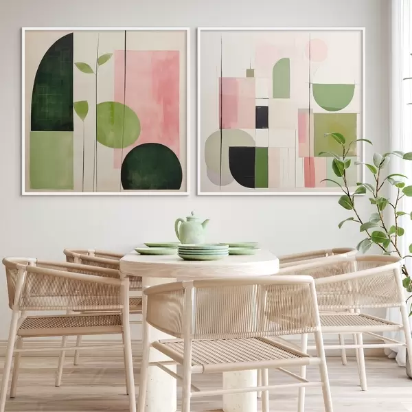 Poster Minimalistisches Diptychon mit stilisierten Blumen und geometrischen Formen Nr d00894