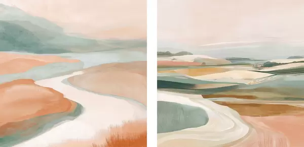Poster Abstrakte Hügel und Fluss in Pastellfarben Nr d00896