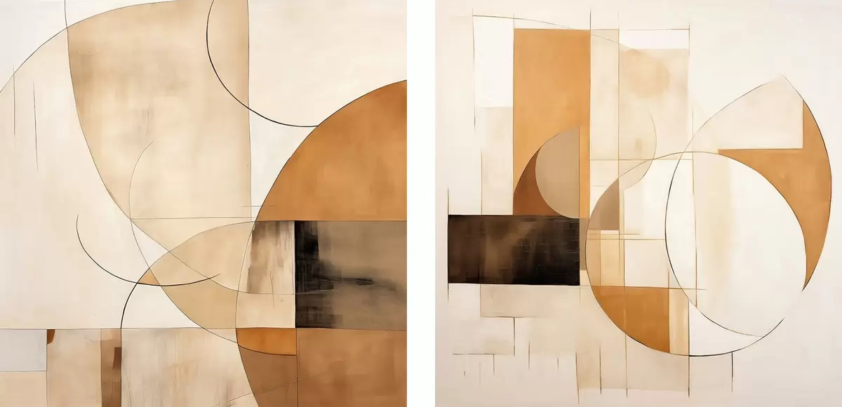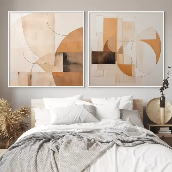 Poster Moderne Abstraktion mit Kreisen und Linien in Kaffee-mit-Milch-Farben Nr d00898