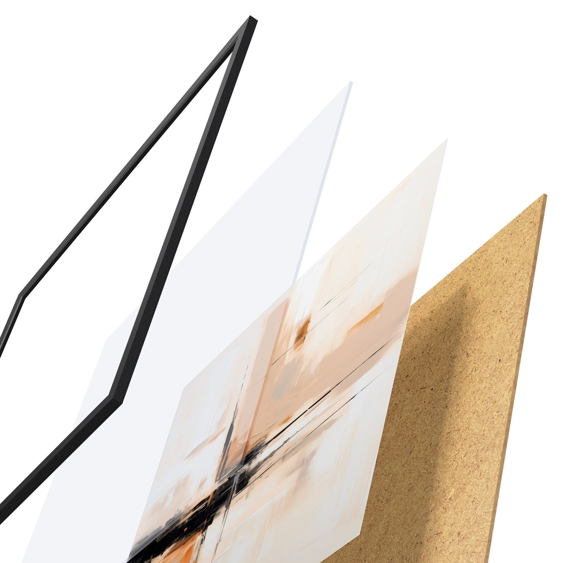 Das Poster besteht aus einem Rahmen, Plexiglas, einem gedruckten Bild und einer Rückwand aus Spanplatten. Dank der Halterungen auf der Rückseite kann das Poster sofort an die Wand gehängt werden.